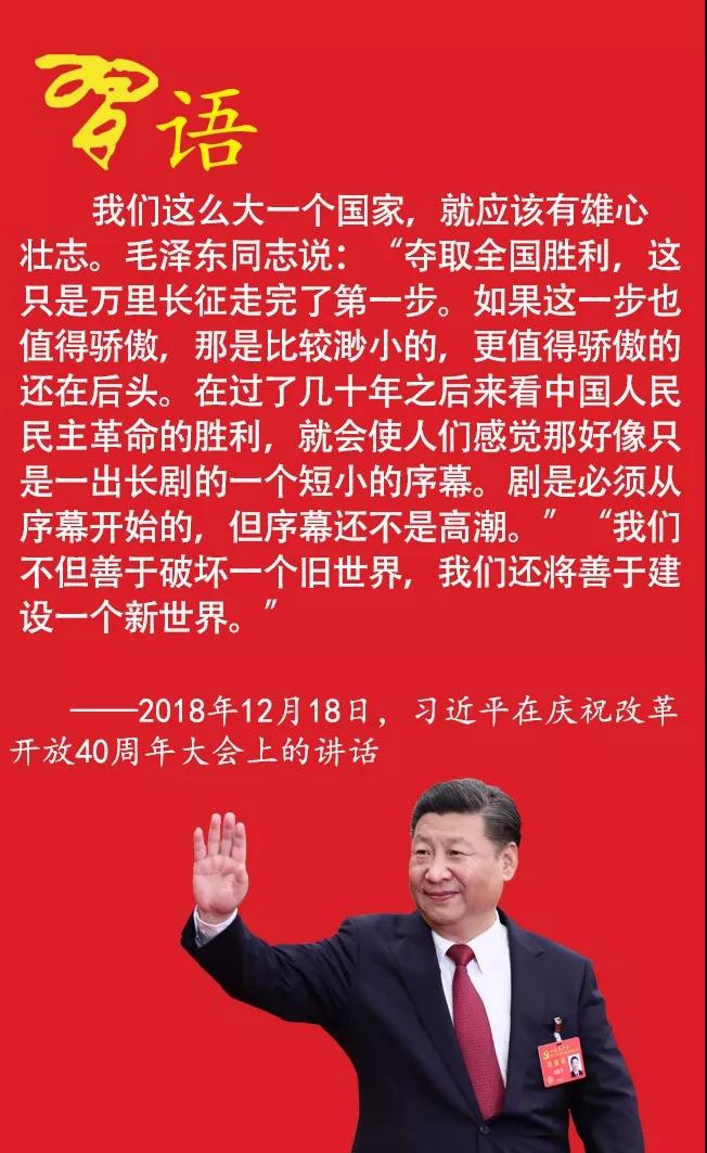 毛澤東同志說過:“中國人民有志氣,有能力,一定要在不遠(yuǎn)的將來,趕上和超過世界先進(jìn)水平?!睂?shí)現(xiàn)我們確立的奮斗目標(biāo),我們既要有“亂云飛渡仍從容”的戰(zhàn)略定力,又要有“不到長城非好漢”的進(jìn)取精神。全黨全國各族人民更加緊密地團(tuán)結(jié)起來,勿忘昨天的苦難輝煌,無愧今天的使命擔(dān)當(dāng),不負(fù)明天的偉大夢(mèng)想,下定決心,排除萬難,在中國特色社會(huì)主義偉大道路上,為實(shí)現(xiàn)中華民族偉大復(fù)興的中國夢(mèng),前進(jìn)!