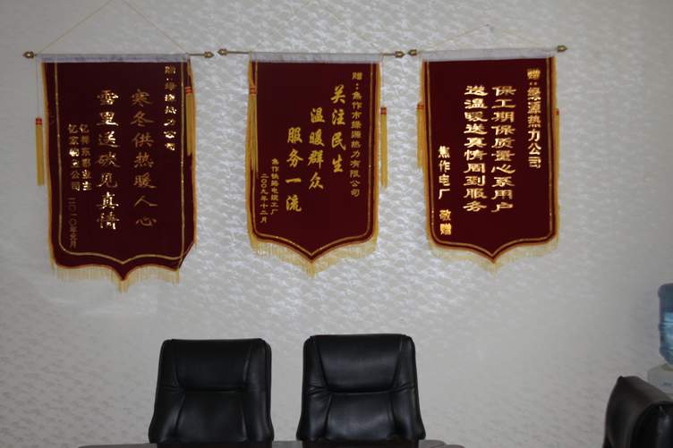為了使電廠居民過一個溫暖祥和的春節(jié),綠源熱力有限公司和電廠小區(qū)雙方共同努力,加班加點,克服重重困難,趕在大年三十當天實現(xiàn)了電廠小區(qū)正式供暖。電廠領導為了表示感謝之情,在春節(jié)過后上班的第一周就向綠源公司贈送了錦旗!贊揚綠源公司“送溫暖送真情周到服務,保工期保質量情系用戶!”