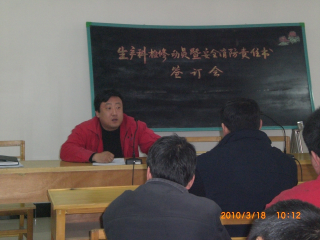 3月18日上午,綠源熱力公司生產(chǎn)科在公司二樓會(huì)議室組織一線職工召開了2010年非采暖季檢修動(dòng)員暨安全消防責(zé)任書簽訂會(huì),會(huì)后又安排專人,對(duì)一線職工進(jìn)行了為期一天的消防安全、技術(shù)培訓(xùn)。貫徹落實(shí)消防安全會(huì)議精神,增強(qiáng)一線員工的安全意識(shí)、提高工作技能,為即將對(duì)到來的緊張而又繁忙的的非采暖季檢修工作做好充分準(zhǔn)備。