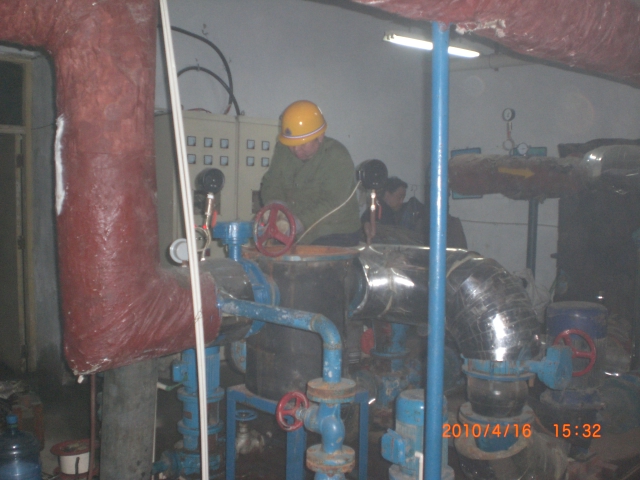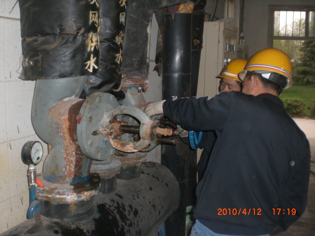 張小倉組4月12日至20日,分別對(duì)農(nóng)發(fā)行換熱站、太極景潤(rùn)換熱站進(jìn)行了檢修;李虎組4月14日至16日檢修豐收小區(qū)換熱站,4月16日至19日,檢修中國(guó)人壽換熱站,截止到4月19日已完成中國(guó)人壽換熱站檢修。通過檢修,共需更換18個(gè)大閥門,其中DN150截止閥7個(gè),DN200截止閥8個(gè),DN250截止閥3個(gè)。