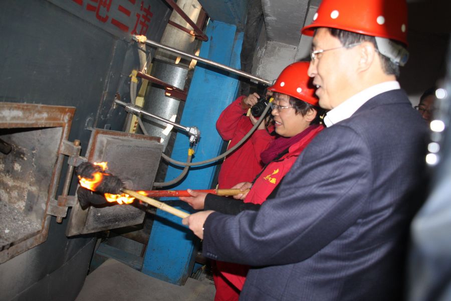 副市長胡小平和市民代表一起為綠源公司供熱點(diǎn)火