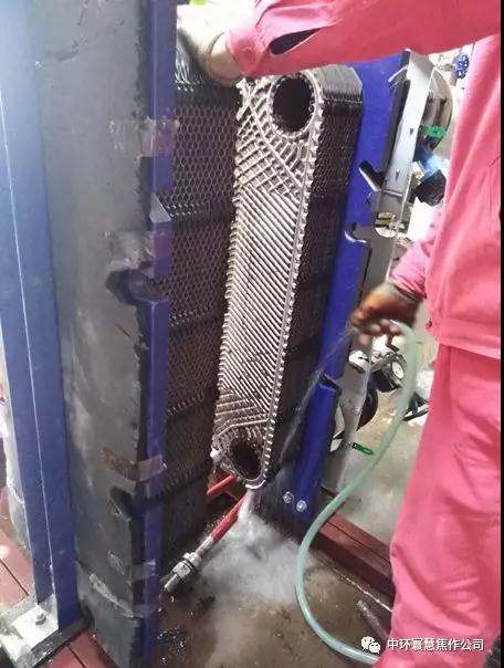 圖為焦作公司檢修人員沖洗板換
